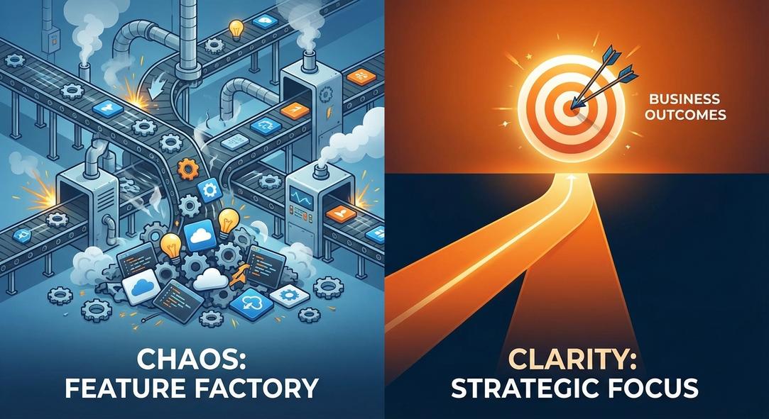 For years, many of us have operated in environments where ‘shipping is the heartbeat of the company.’ Velocity charts and feature counts were proxies for progress. But let’s be honest, how many of those features truly moved the needle on core business metrics?