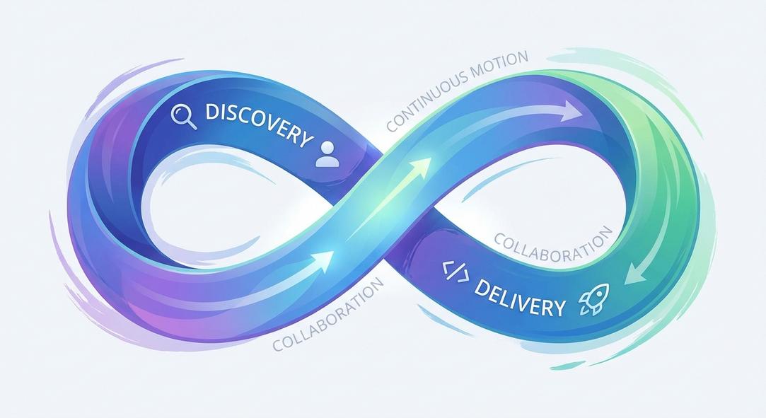 Enter Dual-Track Agile. It’s a simple yet powerful idea: product discovery and product delivery should be two parallel, continuous streams of work. While the delivery track is focused on building and shipping high-quality, validated ideas, the discovery track is constantly running ahead, exploring problems, testing assumptions, and validating solutions with real users. One track feeds the other in a continuous loop.