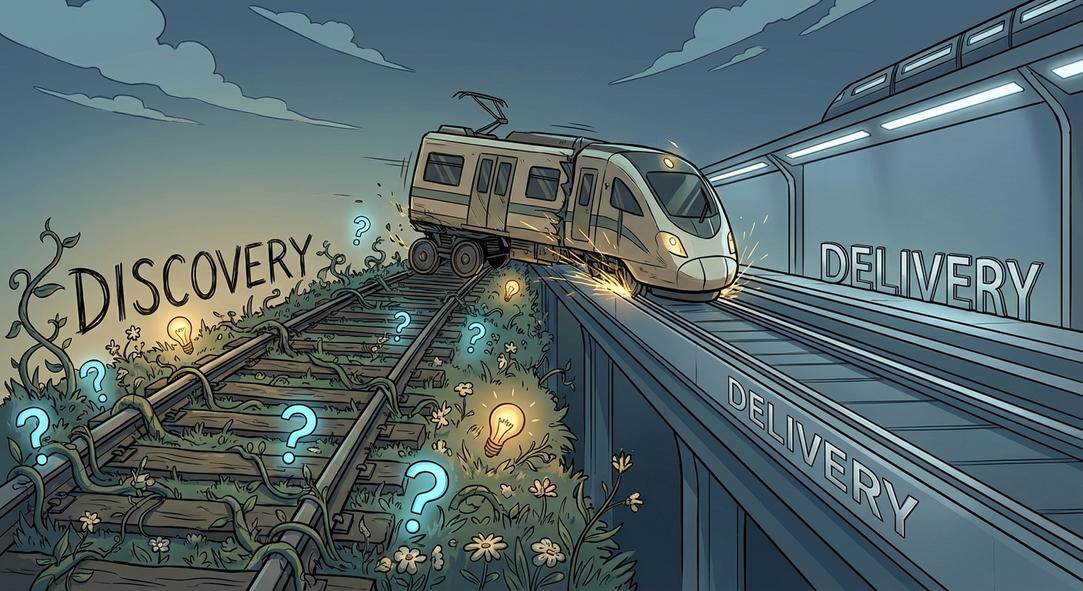 This creates the classic ‘feature factory’ scenario, where we get incredibly efficient at building things nobody truly needs. We’re shipping output, but are we driving outcomes? This is the Discovery-Delivery Paradox: the tension between exploring the unknown (what should we build?) and executing on the known (let’s build it efficiently).