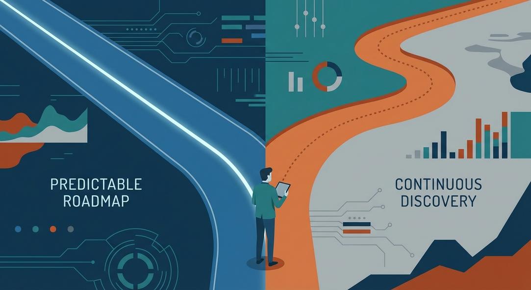 We’re all told to ‘fall in love with the problem’ and embrace continuous discovery. We run user interviews, map opportunities, and test prototypes. But then we walk into a leadership meeting and get asked for a detailed feature roadmap for the next 12-18 months. Sound familiar?
