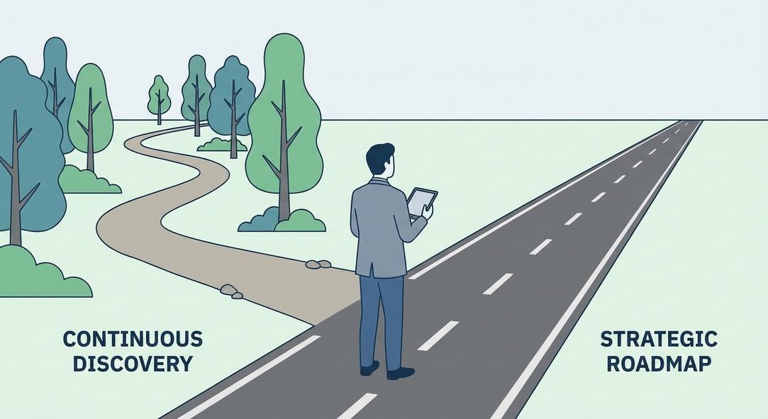I’ve been noticing a growing tension in our field, a classic paradox that feels more pronounced than ever: the push-and-pull between continuous discovery and the demand for a stable, long-term roadmap. On one hand, we’re told to live in a state of constant learning, running experiments, and talking to users to let their needs guide our next move. This is the heart of agile and product-led growth.